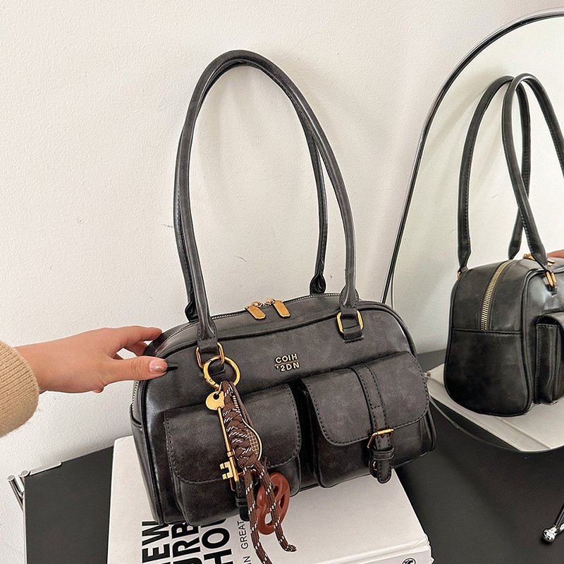 Korean-style Retro Shoulder Bag Fashion Trendy Casual Boston Bag Stylish Bowling Bag